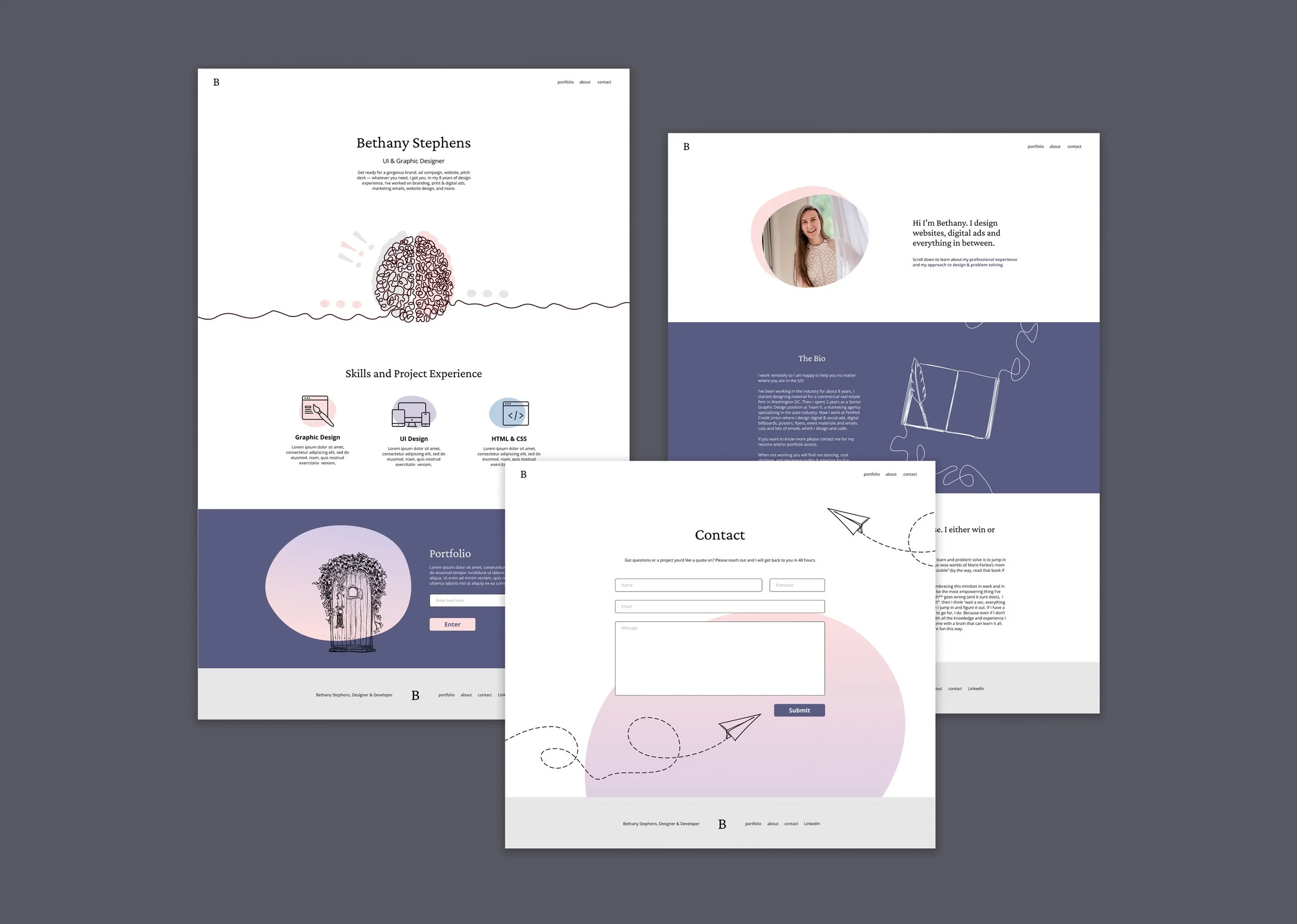 This is my origninal design for this website. I absolutely love it, and I had so much fun designing the branding elements - everything from the brand colors & fonts to the use of line art. However, it was going to have to be hand coded, so I opted for a design more friendly to a drag & drop builder for the sake of time.
